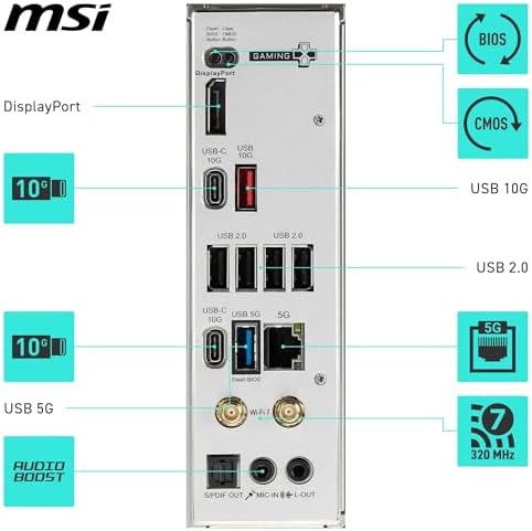 CONNECTIVITY – Network hardware includes a full-speed Wi-Fi 7 module with Bluetooth 5.4 & 5Gbps LAN; Rear ports include USB 10Gbps Type-C and 7.1 HD Audio with Audio Boost